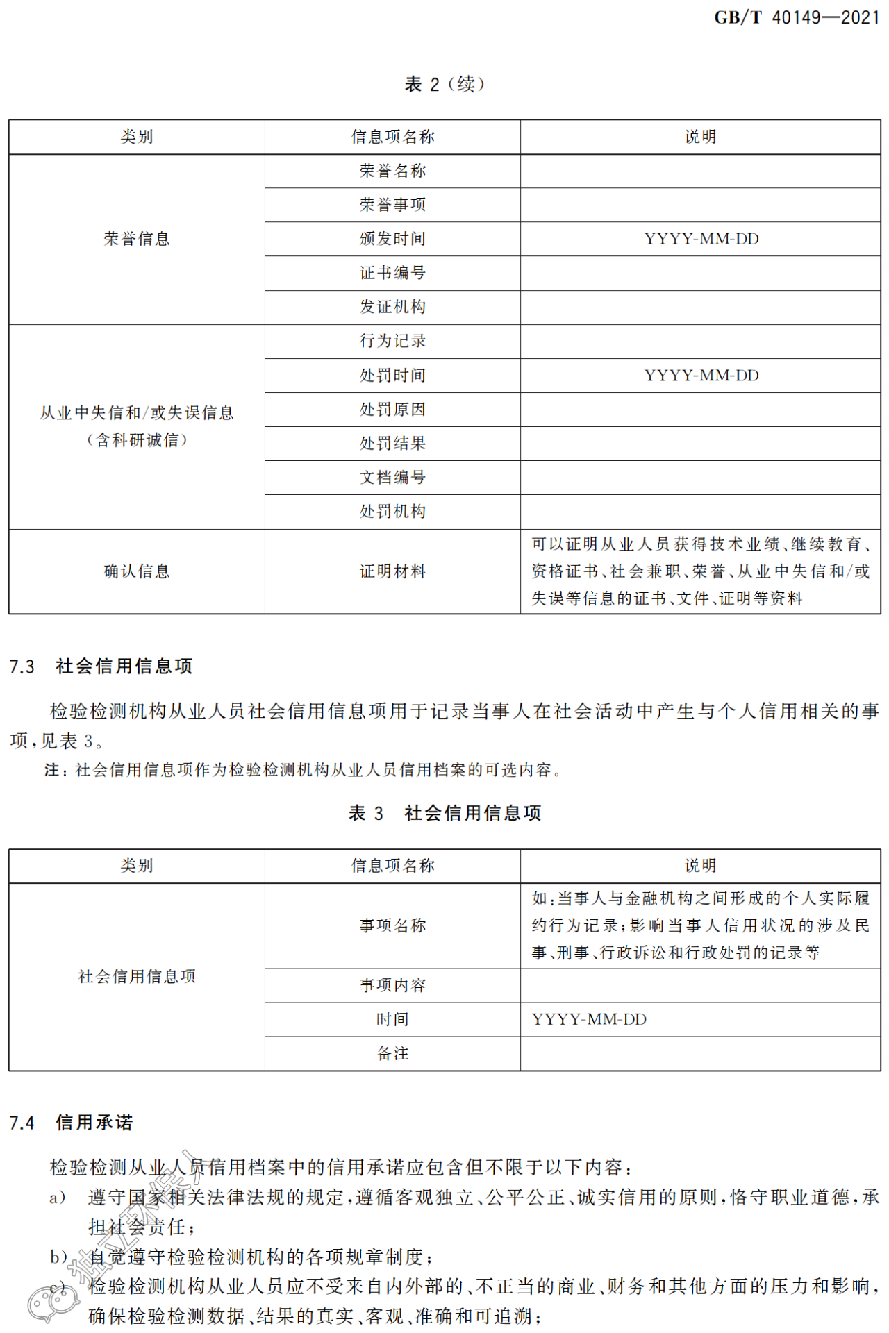 范圍:本標(biāo)準(zhǔn)規(guī)定了檢驗(yàn)檢測(cè)機(jī)構(gòu)從業(yè)人員信用檔案的建設(shè)原則、建設(shè)內(nèi)容、信用檔案信息來源、信用檔案信息項(xiàng)、信用檔案信息項(xiàng)的要求、建設(shè)與管理、使用與共享等。本標(biāo)準(zhǔn)適用于檢驗(yàn)檢測(cè)機(jī)構(gòu)從業(yè)人員信用檔案的建設(shè)和管理。其他組織機(jī)構(gòu)也可參照使用。