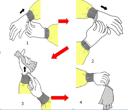 1)戴手套的手避免觸摸鼻子、面部和避免觸摸或調(diào)整其他個人防護(hù)裝備(如眼鏡等)