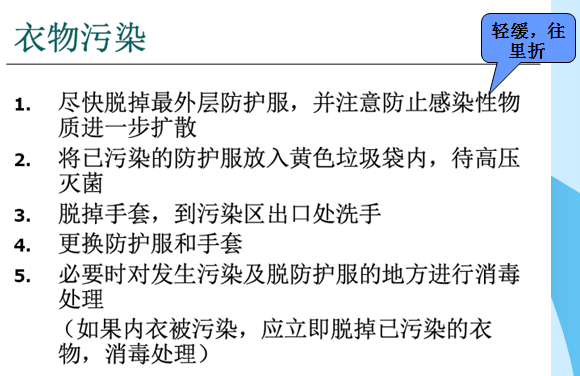 (1).手套損壞、污染1.手套被污染時應(yīng)立即用消毒劑噴灑手套
