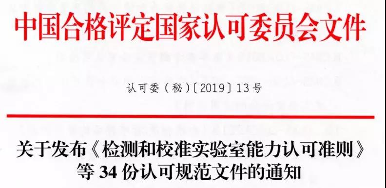 為滿足ISO出版物、國際標準、國家標準對于版權的規(guī)定,中國合格評定國家認可委員會(CNAS)秘書處組織對認可規(guī)范文件(等同采用國際標準/國家標準的認可規(guī)范)進行了集中專項修訂。經批準,現(xiàn)予以發(fā)布。本次共修訂34份認可規(guī)范文件,自2019年2月20日起,舊版文件廢止。修訂文件具體如下。